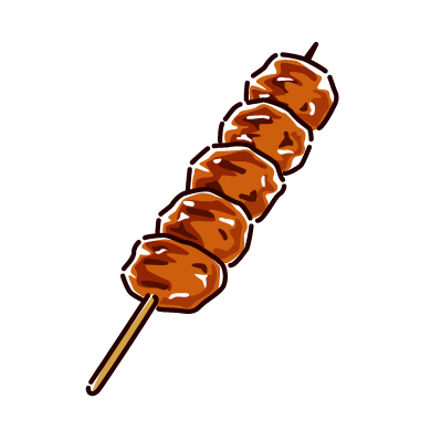 たれ味の焼き鳥のもものイラストです。レシピや料理、食材に関係ある商品のチラシや広告、ブログやSNSなど色々なコンテンツでご利用ください♪