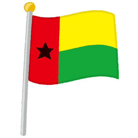 旗掲揚ポールに掲げて風になびくギニアビサウ共和国国旗のイラストです。地理・地図資料や運動会のチラシ・配布プリント・ポスターなどいろいろとご利用ください♪