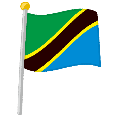 旗掲揚ポールに掲げて風になびくタンザニア国旗のイラストです。地理・地図資料や運動会のチラシ・配布プリント・ポスターなどいろいろとご利用ください♪