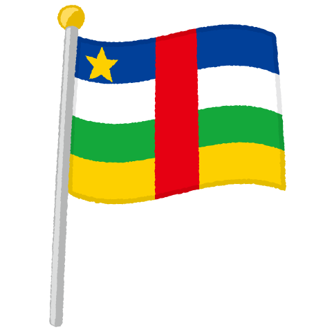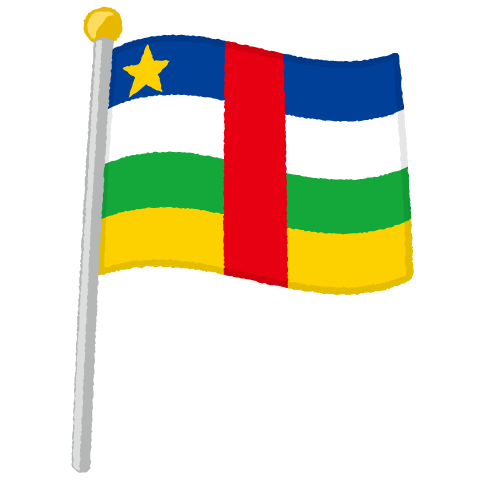 旗掲揚ポールに掲げて風になびく中央アフリカ共和国国旗のイラストです。地理・地図資料や運動会のチラシ・配布プリント・ポスターなどいろいろとご利用ください♪
