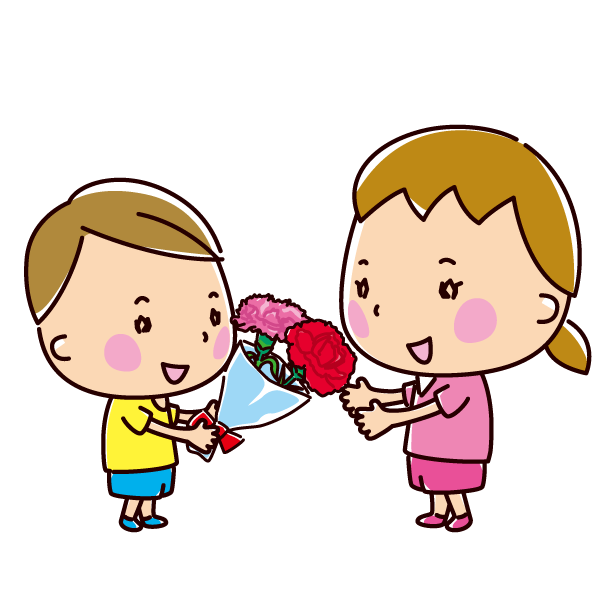 男の子が女の子に花束をわたすイラストです。卒業シーズンの商品のチラシや広告、学校や地域の行事など色々なコンテンツでご利用ください♪