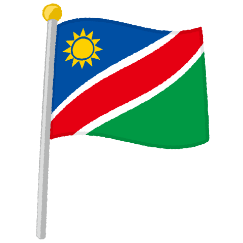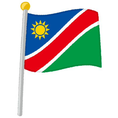 旗掲揚ポールに掲げて風になびくナミビア国旗のイラストです。地理・地図資料や運動会のチラシ・配布プリント・ポスターなどいろいろとご利用ください♪